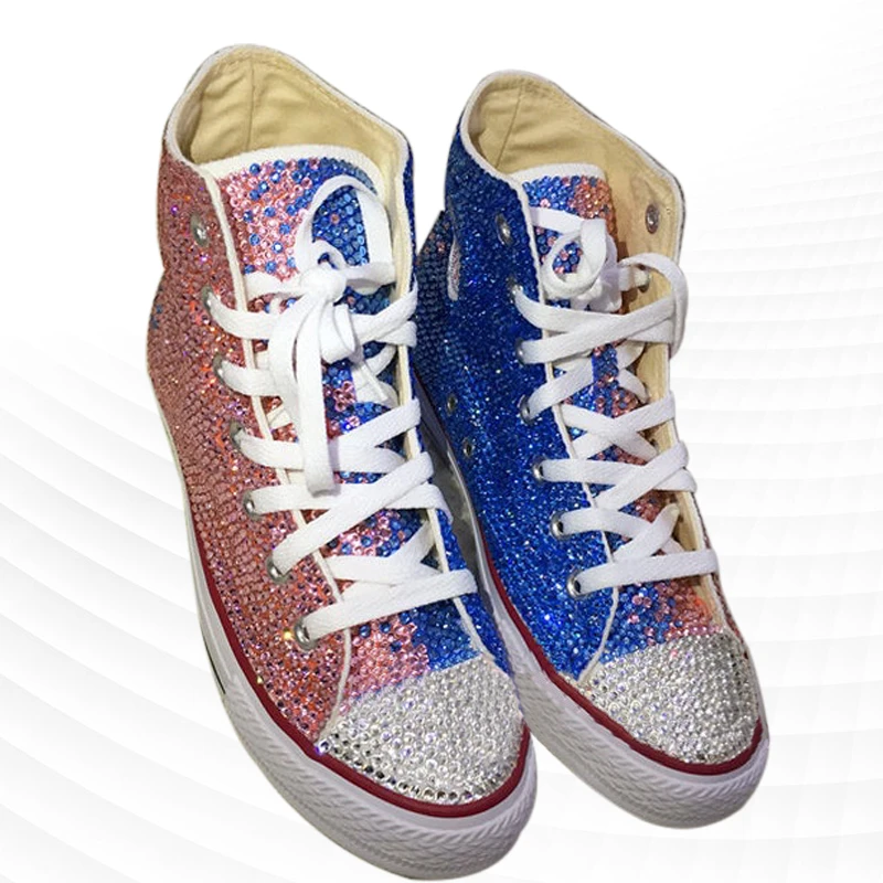 Double Spell Blue Pink High Top Canvas Shoes Comfortable Walking Sneakers Comfortable Handmade Rhinestone Vulcanized Shoes 35 46 Walking Shoes Aliexpress